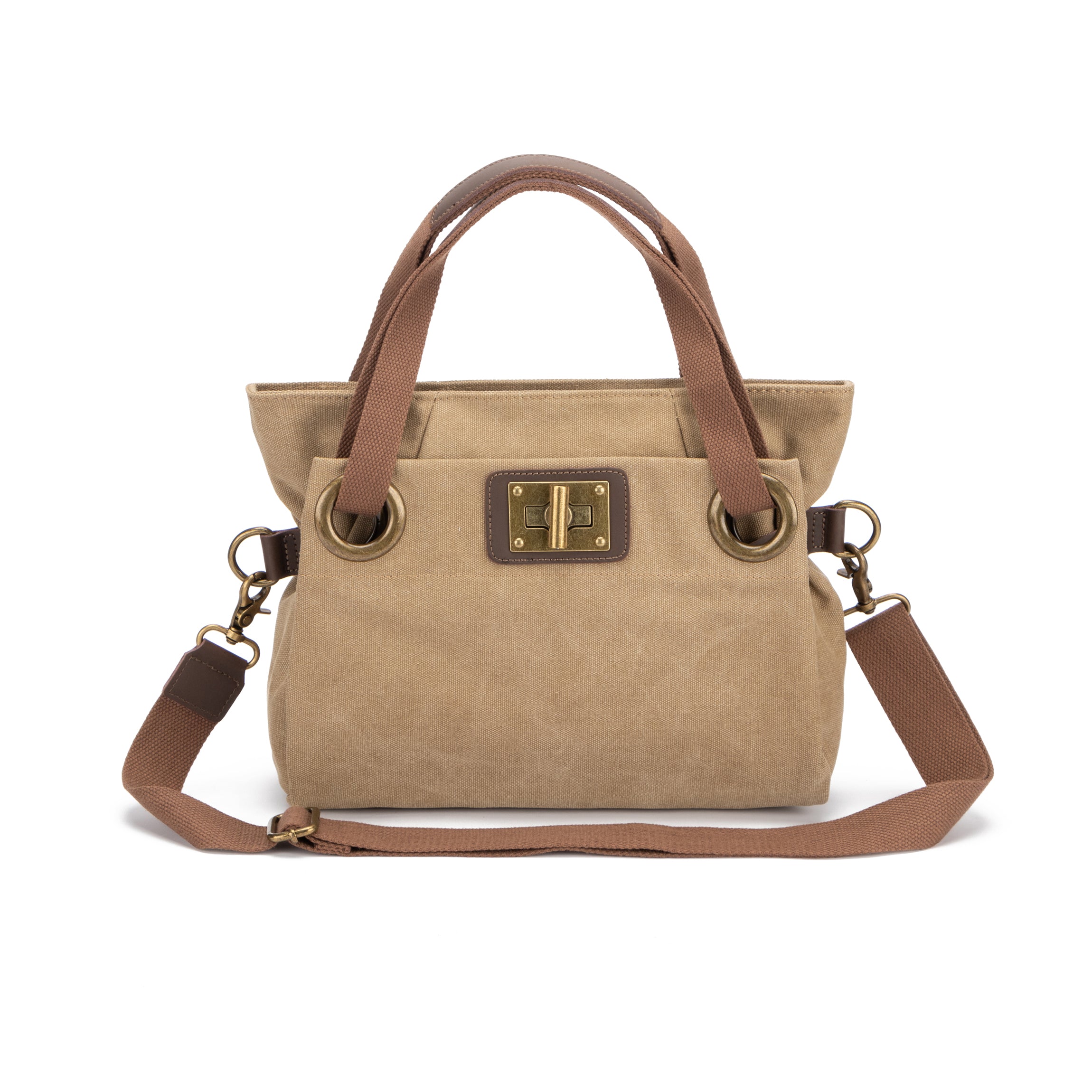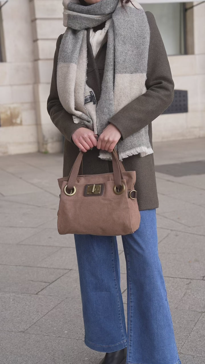 Made of faded cotton canvas and split leatherit offers a soft, natural feel. Its canvas and leather handlesas well as its adjustable and removable shoulder strapallow it to be adapted to all wearing styles.